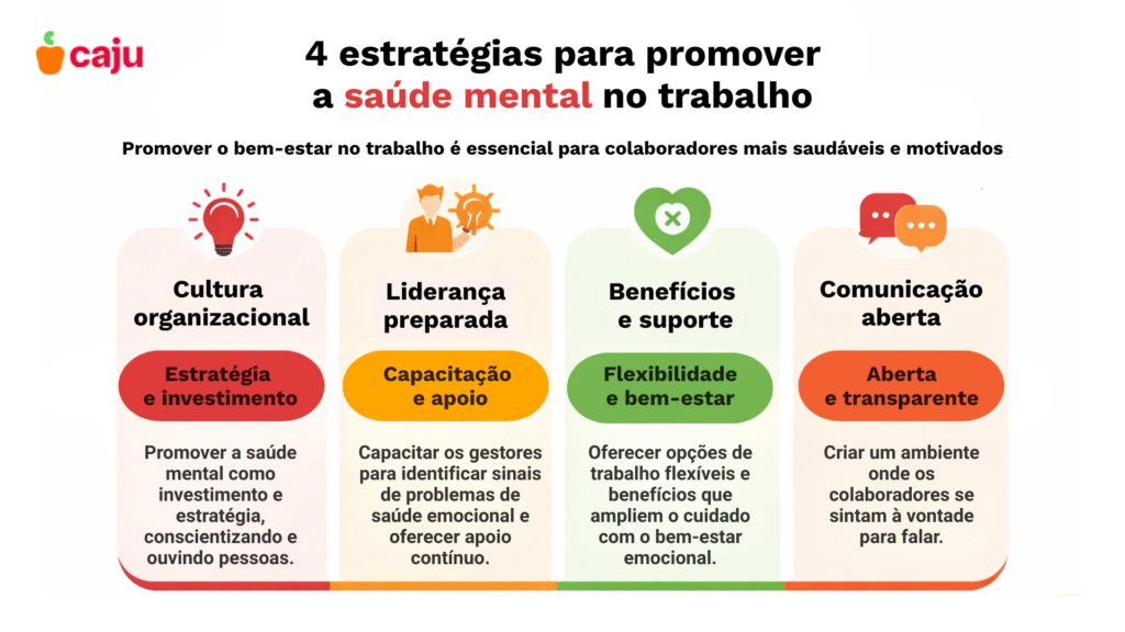 Investindo em programas de apoio emocional, criando uma cultura de cuidado, oferecendo benefícios de bem-estar e capacitando líderes para reconhecer e apoiar os colaboradores.