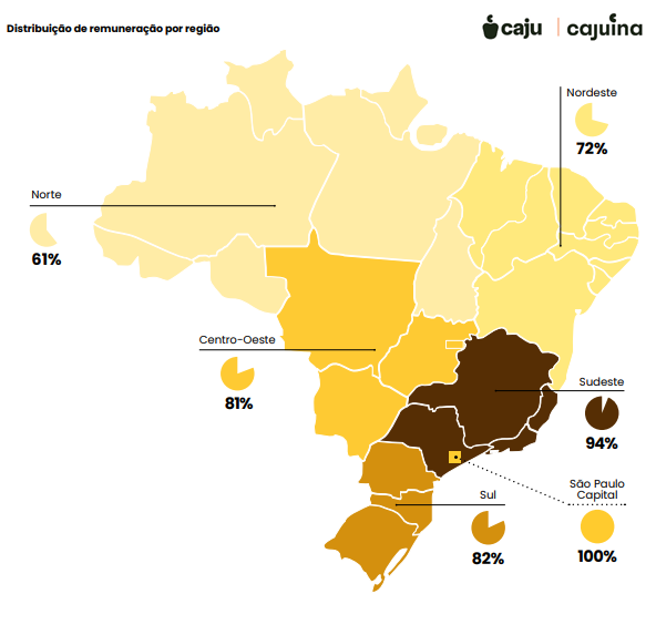 Os dados do Goles de Inspiração para o RH 2026 mostram que sim: profissionais de RH no Norte recebem até 39% menos do que a média salarial de São Paulo, a capital paulista. No Nordeste, a diferença chega a 28%.